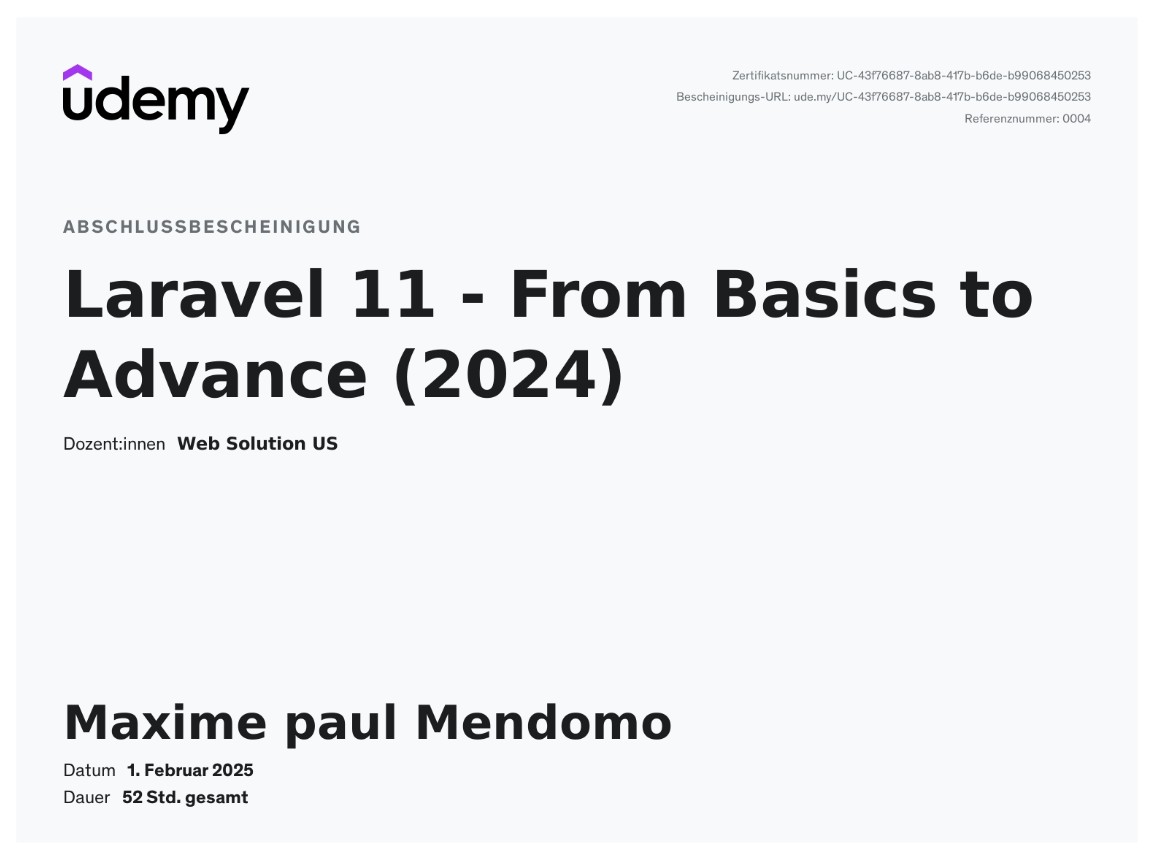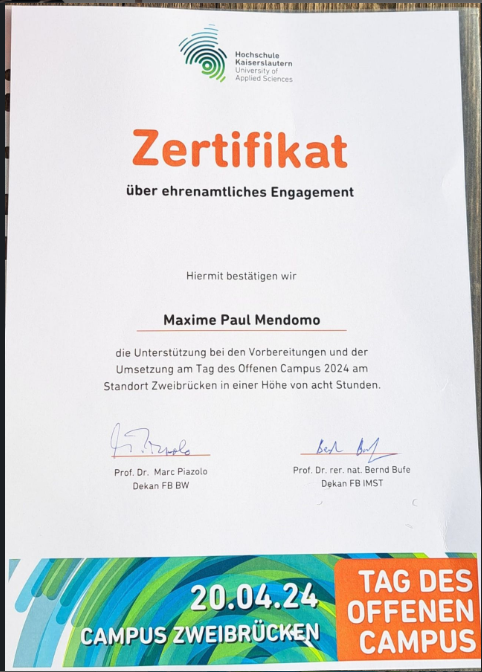 mein Name ist Maxime Paul Mendomo. Ich habe mein Studium der Wirtschaftsinformatik mit einer Spezialisierung im IT-Engineering an der Hochschule Kaiserslautern abgeschlossen.